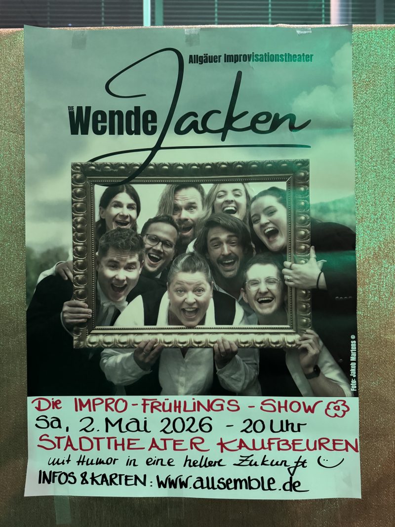 Schließlich folgte der Höhepunkt des Abends und Spoiler: die, die nicht dabei waren, haben leider was verpasst. Beim Allgäuer Improtheater Wendejacken blieb kein Auge trocken. Und immer mit dabei, aber in verträglicher Dosis untergemischt: die Politik ;-). Sogar unser oberster Foodblogger Markus Söder bekam in zwei Einlagen eine Rolle!