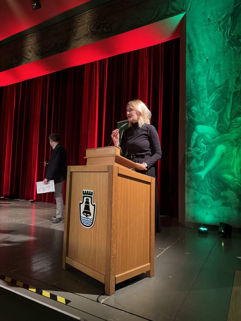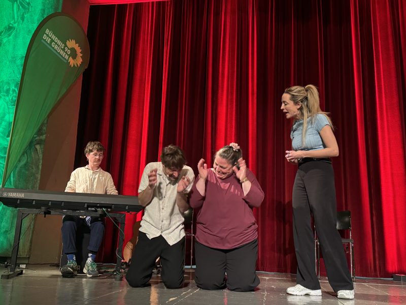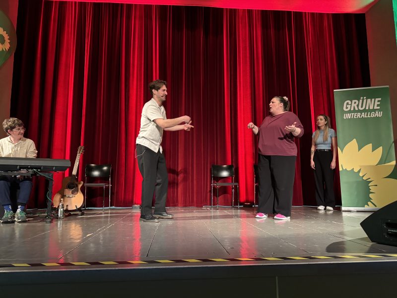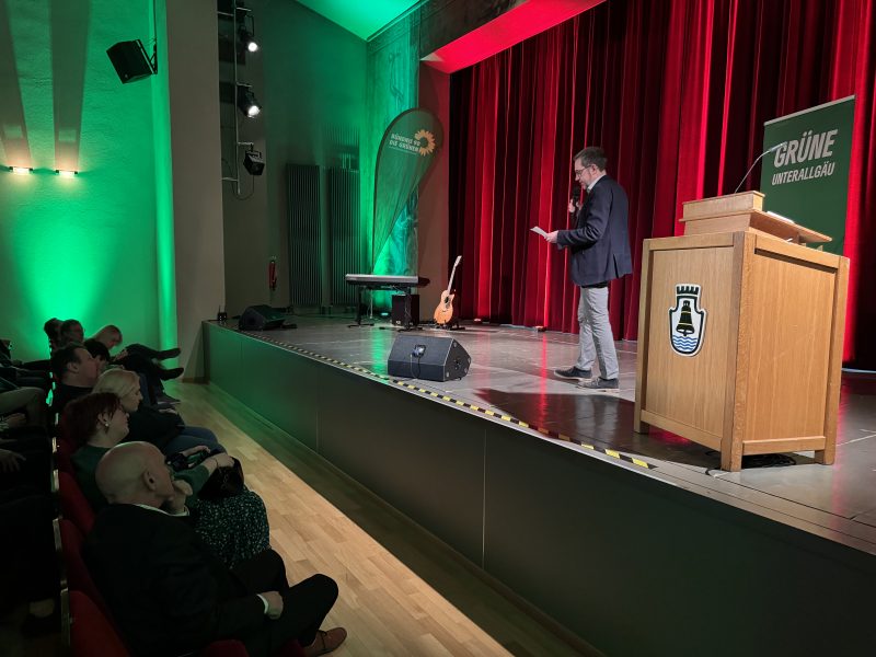 Im Stadttheater begrüßte und moderierte unser Kreisvorsitzender, Frank Muck, unsere anwesenden Mitglieder und Gäste. Natürlich durften auch Statements und Reden unserer Spitzenkandidierenden für den Kreistag nicht fehlen: Johanna Hölzle, Robert Blasius und unser Landratskandidat Dr. Otto Schmid.